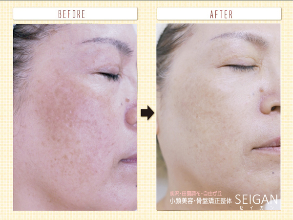 加齢による一般的な悩みはありましたが、正直、エステでここまで改善するとは思っていませんでした。施術後は肌に弾力・ツヤがもどり、くすみも取れました。ファンデーションの乗りもよく、今までより薄塗りなのに、仕上がりが明るくなりました。肌の調子が良いと気分も晴れ、気持ち的に上がるのも嬉しいです。随分とほったらかしていたお手入れもこれを機にまたきちんとするようになりました。からだのことなら(旧 Seigan)さんにオススメ頂いた製品はとってもシンプルなのにエステ後の良い状態をしっかり保つことが出来て助かっています。