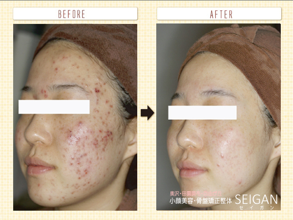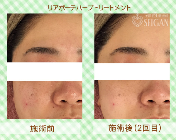 特にニキビ跡の改善は個人差がございます。半年以上たち慢性化してしまったニキビ跡(色素沈着・クレーター)は非常に改善が難しく、美容クリニックでも年単位で時間とお金がかかります。機械による強い刺激は、お悩みをさらに慢性化させてしまう恐れもありますので注意を要します。まずリアボーテ ハーブトリートメント3回程度受けて頂き、お肌に変化があるかどうか見極めていくことが必要です。