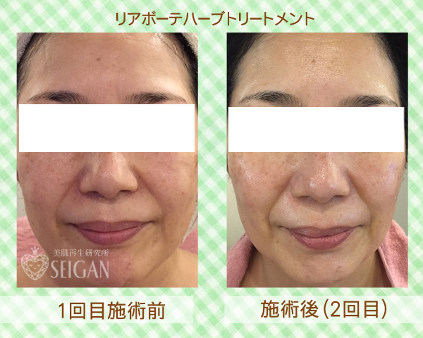 40代女性 リアボーテ ハーブトリートメント1回 クレアスキン基礎2ヶ月使用